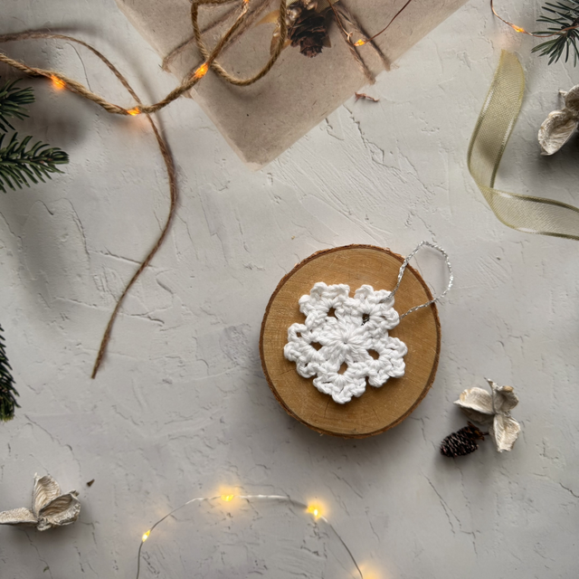 Apportez une touche élégante à votre sapin avec ce flocon de neige crocheté en Haute-Savoie. Réalisé en fil 100 % coton, il capture la délicatesse de l’hiver tout en offrant une décoration artisanale et authentique.