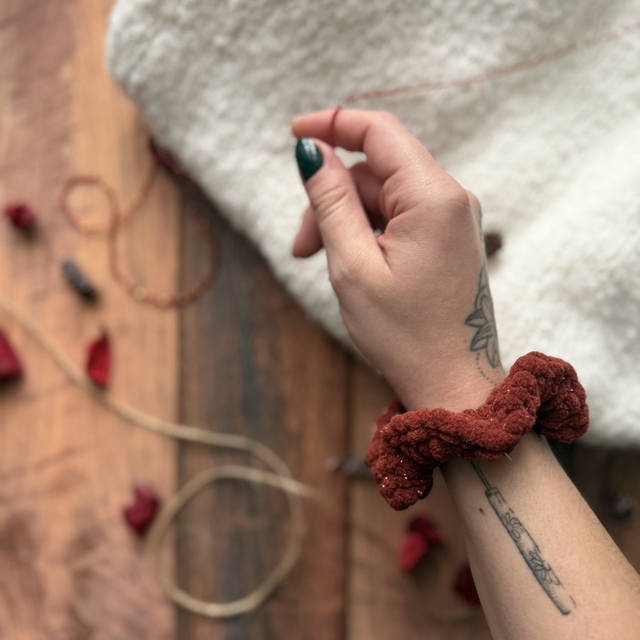 Crocheté à la main dans mon atelier en Haute-Savoie, il mêle confort et teinte vibrante, pour un effet instantanément stylé.