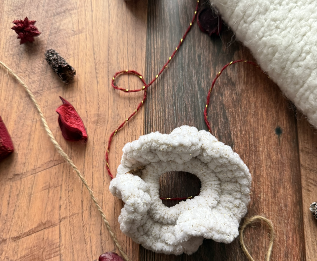 Un chouchou qui sent bon les fêtes, crocheté à la main dans mon petit atelier en Haute-Savoie.