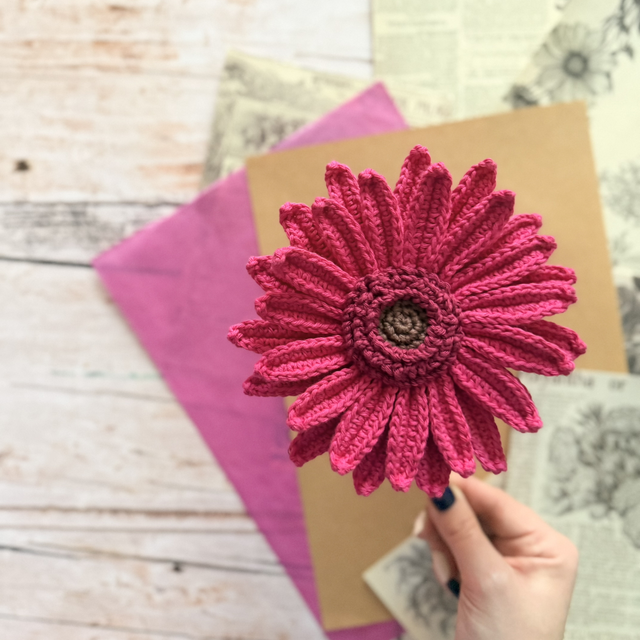 Chaque fleur est crochetée avec soin, en Haute-Savoie, avec du fil 100 % coton certifié Oeko-Tex.