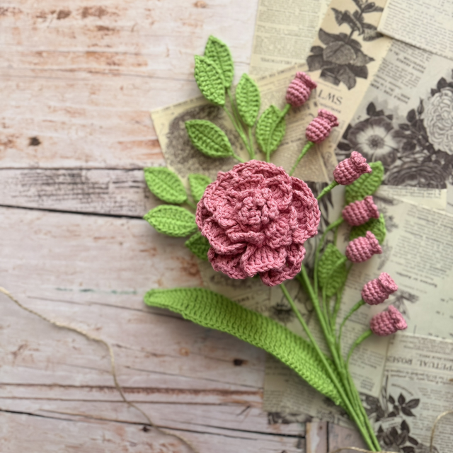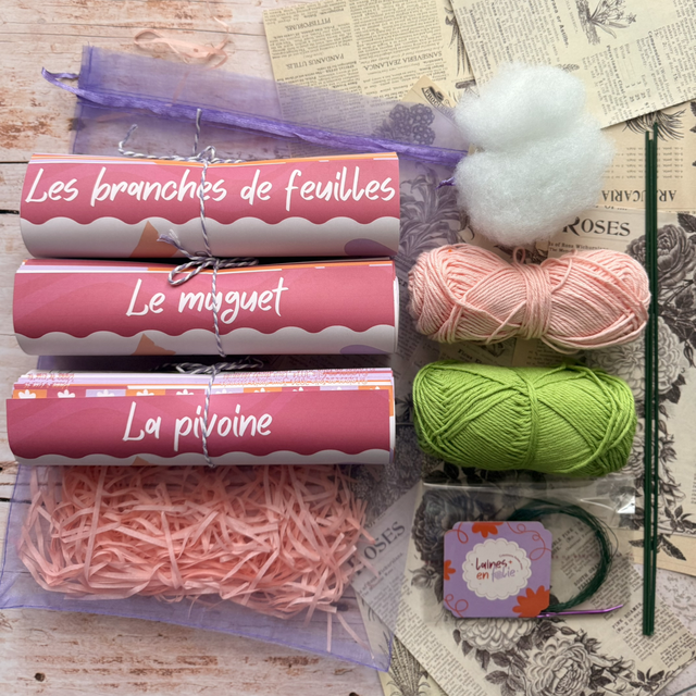 Kit bouquet personnalisable – pivoine et muguet au crochet