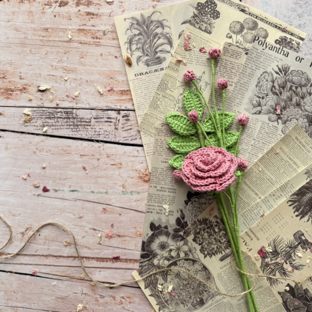 Kit bouquet personnalisable – rose et bourgeons au crochet