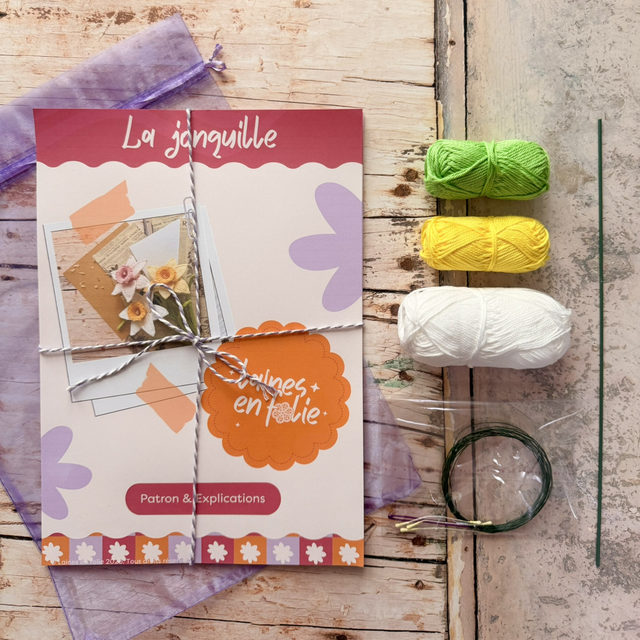 Avec ce kit crochet, tu réalises une jonquille grâce à un contenu complet et de qualité.