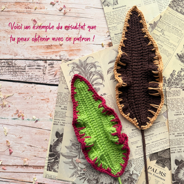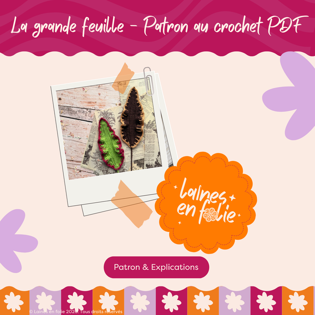 ✔️ Un fichier PDF de 19 pages en français (aperçu en photos) avec toutes les explications pour crocheter ta feuille. (Pense à bien entrer ton adresse mail pour le recevoir !)