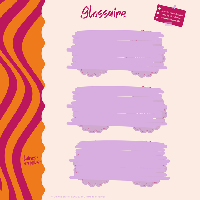 ✔️ Un glossaire des mailles utilisées avec lien + QR code vers des vidéos explicatives.