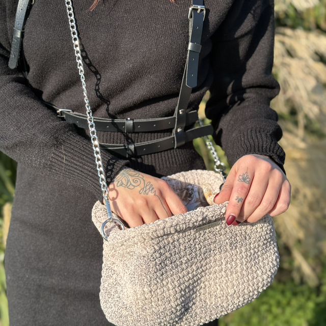 Crochetée avec amour dans mon atelier en Haute-Savoie, cette pochette incarne la simplicité chic et la douceur.
